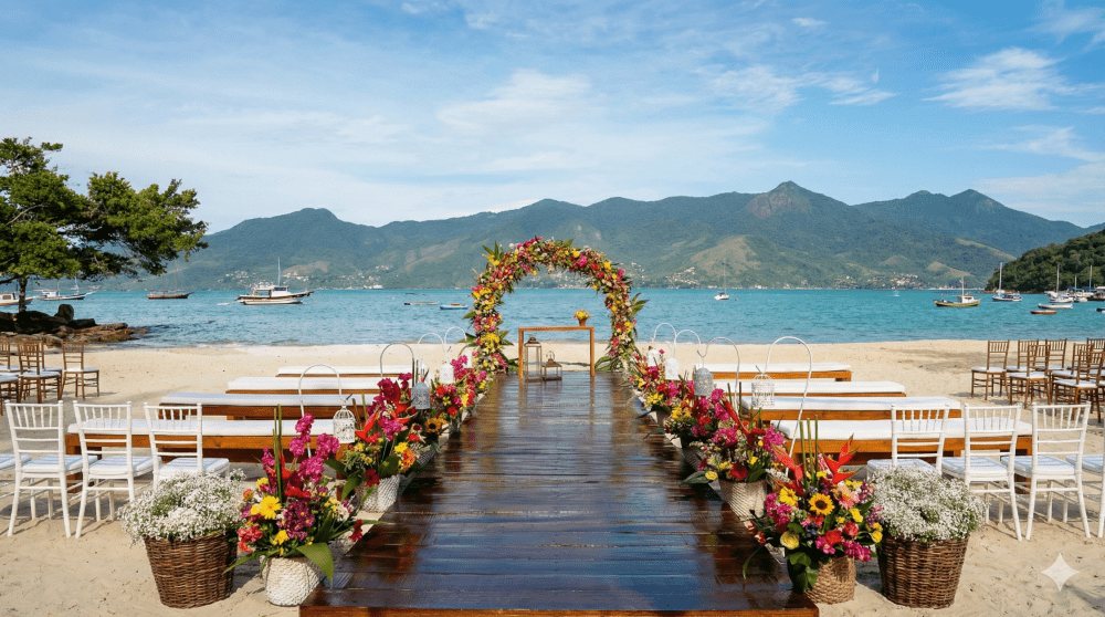 Nosso casamento acontecerá em um ambiente praiano e ao ar livre,